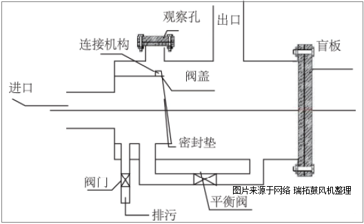 羅茨風(fēng)機止回平衡閥主要由閥體、舌管、閥板連接體、觀察口、檢查清理口、排污管、平衡閥、密封板、閥板等組成。羅茨風(fēng)機止回平衡閥加工構(gòu)造、原理及具體作用如下。