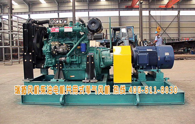 曝氣風(fēng)機(jī)還有一種柴油機(jī)和電機(jī)混用的風(fēng)機(jī),既可以使用電機(jī)進(jìn)行驅(qū)動(dòng),又可以使用柴油機(jī)進(jìn)行驅(qū)動(dòng),如下圖所示,通過(guò)下圖,我們就能看到其結(jié)構(gòu)的特殊性。
